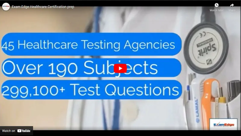 Welcome to Exam Edge! If you are preparing to take your Healthcare certification exams, you have come to the right place! We are an industry leader in online test preparation services and online practice exams for 45 Agencies Healthcare testing agencies, covering more than 190 subjects, utilizing over 291,200 unique test questions all designed to help you prepare for your Healthcare certification exam.
