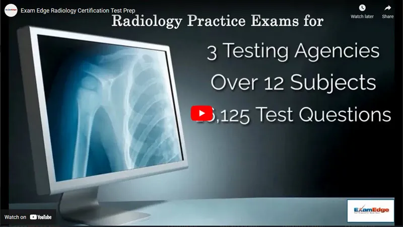 Welcome to Exam Edge! If you are preparing to take your Radiology certification exams, you have come to the right place! We are an industry leader in online test preparation services and online practice exams for 3 Radiology testing agencies, covering more than 12 subjects, utilizing over 16,125 unique test questions all designed to help you prepare for your Radiology certification exam. Our practice tests are the closest thing you will find to the real exam!